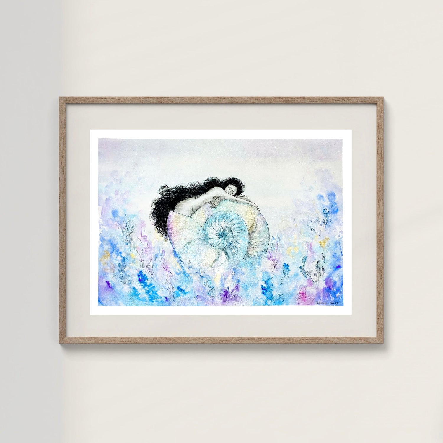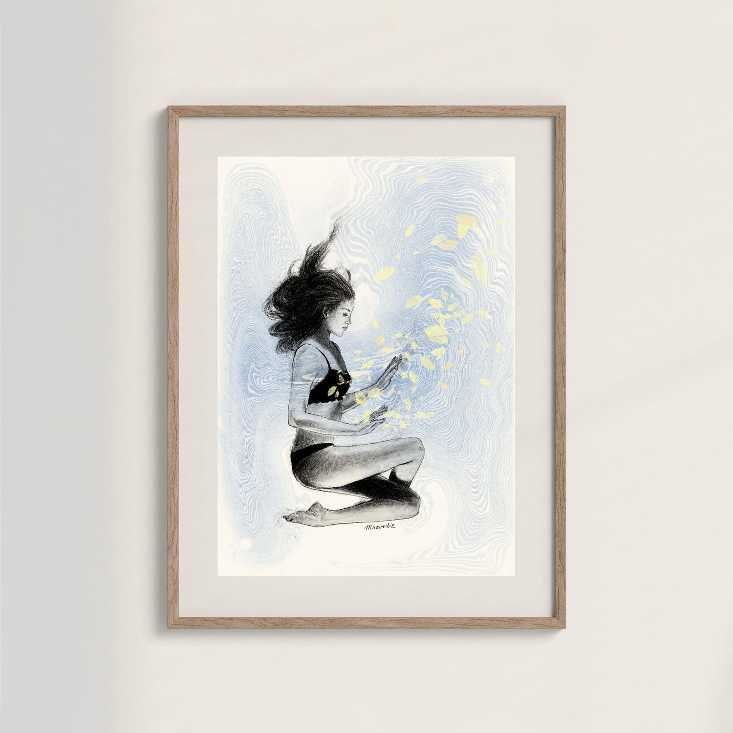 Illustrations sur fond Suminagashi, technique japonaise qui consiste à imprimer sur du...