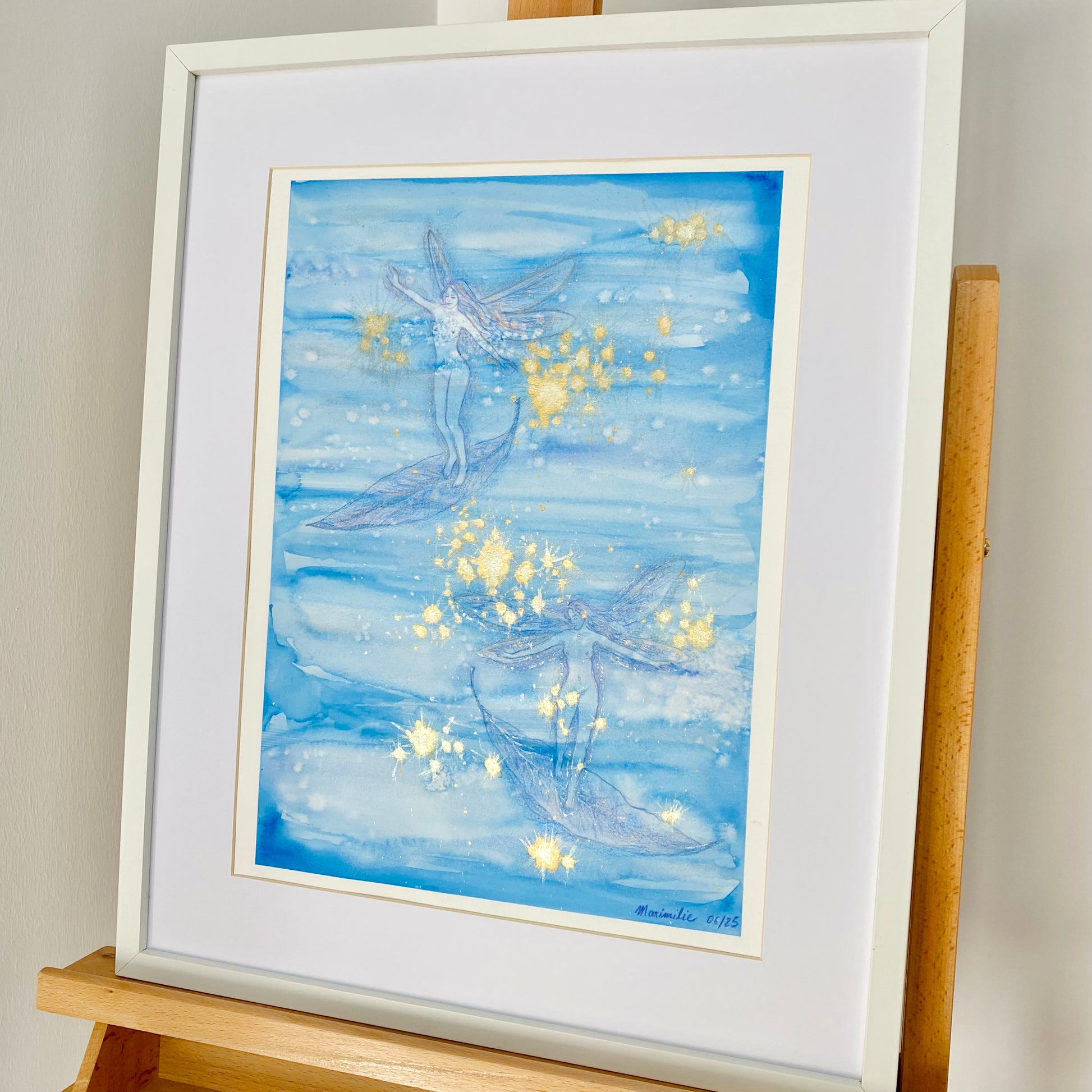 Cette œuvre fait partie de la collection Les Fées de l’Eau, une série d’illustrations inspirées du monde invisible, de la nature délicate et de la connexion entre les éléments.