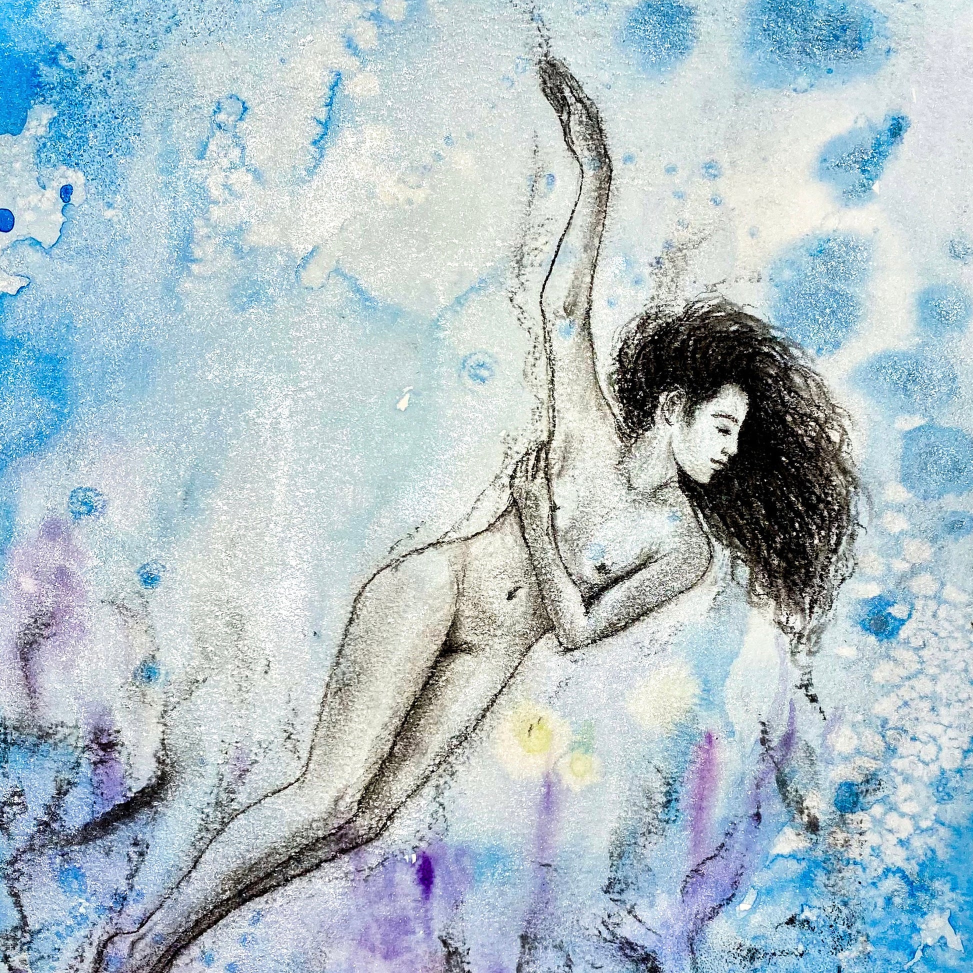 Reproduction illustration au fusain sur fond d’aquarelle.